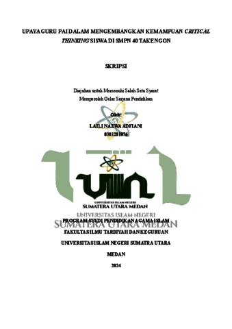 Nazwa Adfiani, Laili (2024) Upaya Guru Pai Dalam Mengembangkan Kemampuan Critical Thinking Siswa Di Smpn 40 Takengon Upaya Guru Pai Dalam Mengembangkan Kemampuan Critical Thinking Siswa Di Smpn 40 Takengon. Skripsi thesis, Universitas Islam Negeri Sumatra Utara.
