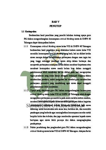 Upaya Guru Pai Dalam Mengembangkan Kemampuan Critical Thinking Siswa Di Smpn 40 Takengon Upaya Guru Pai Dalam Mengembangkan Kemampuan Critical Thinking Siswa Di Smpn 40 Takengon