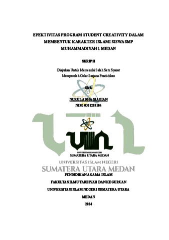 Siagian, Nurul Adha (2024) EFEKTIVITAS PROGRAM STUDENT CREATIVITY DALAM MEMBENTUK KARAKTER ISLAMI SISWA SMP MUHAMMADIYAH 1 MEDAN. Skripsi thesis, Universitas Islam Negeri Sumatera Utara Medan.