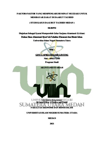Ginting, Ginta Aprianingsih (2021) Faktor-Faktor Yang Mempengaruhi Minat Muzzaki Untuk Membayar Zakat di Daarut Tauhiid Medan. Skripsi thesis, UIN Sumatera Utara Medan.