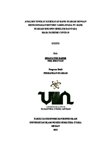 Rahmi, Hidayatur (2022) Analisis Tingkat Kesehatan Bank Syariah Dengan Menggunakan Metode CAMELS Pada PT. Bank Syariah Bukopin Sebelum Dan Pada Masa Pandemi Covid-19. Diploma thesis, UIN Sumatera Utara.