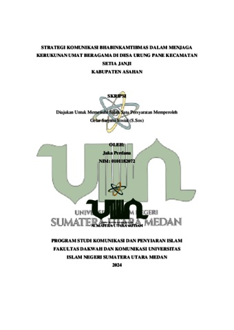 Perdana, Jaka (2024) Strategi Komunikasi Bhabinkamtibmas Dalam Menjaga Kerukunan Umat Beragama Di Desa Urung Pane Kecamatan Setia Janji. Diploma thesis, UIN Sumatera Utara.
