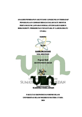 Oktaviani, Gadis (2024) Analisis Penerapan Akuntansi Lingkungan Terhadap Pengelolaan Limbah Sebagai Salah Satu Bentuk Pertanggung Jawaban Sosial (Studi Kasus Kebun Berangir Pt. Perkebunan Nusantara Iv Labuhanbatu Utara). Skripsi thesis, Universitas Islam Negeri Sumatera Utara.