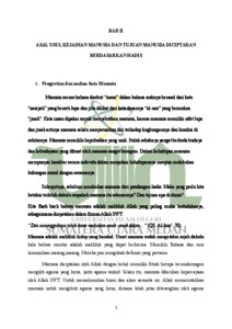 Penelitian ini dilatar belakangi dengan asal usu kejadian manusia yang berbeda pendapat diantara para ahli sains dan para ulama. Dimana Dengan sedikit banyaknya perbedaan pendapat mengenai penciptaan manusia. Menurut ilmuwan dari Barat, manusia berasal dari seekor kera kemudian melalui seleksi dan tahapan alam. Hal tersebut menyebabkan pro dan kontra dikalangan peneliti. Namun, pada hakikatnya yang lebih masuk akal yaitu telah tertera dalam kitab suci umat Islam ialah Al-Qur’an dan As-sunnah. Manusia tercipta dari setetes mani yang tersimpan didalam rahim wanita kemudian dalam prosesnya menjadi segumpal darah dan segumpal daging kemudian tumbuhlah tulang-tulang yang dibalut oleh daging tersebut lalu ditiupkanlah kepadanya ruh. Manusia diberikan kelebihan akal dan sangat berperan besar di muka bumi ini, baik sebagai subjek yang sangat berpengaruh dalam tatanan roda kehidupan sehari-hari, sehingga dapat mencari kebutuhan yang diperlukannya. Kemudian banyak Istilah dalam penyebutan manusia itu ibarat al-basyar, al-Insan, al-Ins, an-Nas, al-Unas dan Bani Adam. Dengan demikian, hal itu tidak mengurangi sedikitpun dari eksistensi manusia itu sendiri. Berdasarkan latar belakang yang telah dipaparkan diatas, maka pokok permasalahan penelitian ini adalah : Bagaimana asal usul kejadian manusia pada pespektif hadis?, Bagaimana proses asal usul kejadian manusia pada perspektif sains?, Bagaimana pendapat para Ulama hadis dan sains mengenai proses? penciptaan manusia?, Bagaimana pandangan islam terkait naluri dan pandangan hadis terkait fitrah manusia? Penelitian ini menggunakan metode kualitatif, dengan melakukan pengumpulan data melalui studi perpustakaan (library research). Sehingga segala referensi dan informasi didapatkan dengan bantuan bermacam-macam materi. Selanjutnya mencari hadis-hadis didalam kitab-kitab turots para ulama. Tujuan dari penelitian ini ialah untuk mengetahui tujuan dan hakikat manusia di ciptakan, serta memecahkan tiga pertanyaan mendasar (Uqdatul Qubro) yaitu: Darimana dia?, Untuk apa dia hidup?, dan Mau kemana setelah mati? Sehingga setelah manusia mengetahui jati dirinya sebagai hamba Allah, iapun dapat memecahkan 3 pertanyaan mendasar (Uqdatu Kubro) tersebut. Maka pula dia juga mengetahui arah jalan hidupnya dengan jelas dan tidak akan menyia-nyiakan waktu yang telah diberikan oleh Sang Khalik untuk beribadah serta akal yang diberikan untuk berpikir. Kemudian hadirnya skripsi ini bertujuan membuka pemikiran serta mematahkan teori pemikiran barat terkait asal usul kejadian manusia. Hasil dari penelitian ini, Manusia merupakan materi yang berasal dari saripati (tanah) kemudian melalui pancaran tulang tsulbi laki-laki. Hal ini tidak ada perpedaan diantaranya semua insan memiliki potensi yang sama akan tetapi yang membedakannya ialah ketakwaannya kepada Allah. Dimana manusia diciptakan hanya untuk beribadah kepada Allah semata. Oleh karena itu mestinya seorang manusia mengetahui hakikat dirinya (jati dirinya).