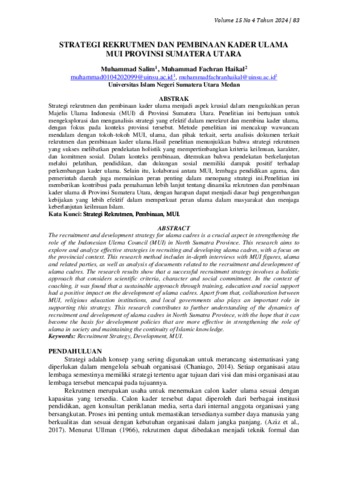 Salim, Muhammad Strategi Rekrutmen Dan Pembinaan Kader Ulama Mui Provinsi Sumatera Utara. Jurnal Riset Ekonomi dan Manajemen (JREM).