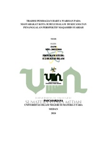 Zaini, Zaini (2024) Tradisi Pembagian Harta Warisan Pada Masyarakat Kota Subulussalam Di Kecamatan Penanggalan Perspektif Maqashid Syariah. Masters thesis, UIN Sumatera Utara.