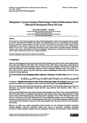 Setia Ningsih, Putri Manajemen Yayasan Gerakan Peduli Sungai Dalam Melaksanakan Green Dakwah Di Kecamatan Percut Sei Tuan. Daengku: Journal of Humanities and Social Sciences Innovation.