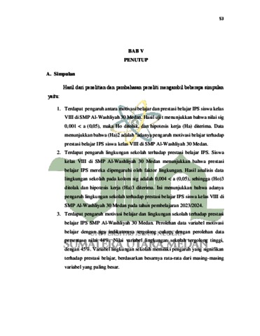Pengaruh motivasi belajar dan lingkungan sekolah terhadap prestasi belajar siswa pada mata pelajaran IPS pada siswa kelas VIII di SMP Al-Washliyah 30 Medan tahun pembelajaran 2023/2024