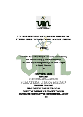 Utami, Nancy Putri (2024) Exploring Higher Education Learners’ Experience of Utilizing Gemini Chatbot in English Language Learning. Masters thesis, UIN Sumatera Utara Medan.