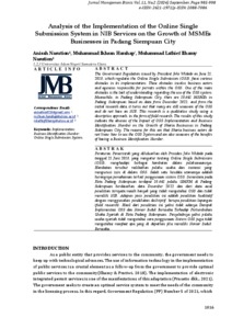 Nasution, Anisah (2024) Analysis of the Implementation of the Online Single Submission System in NIB Services on the Growth of MSMEs Businesses in Padang Siempuan City. Jurnal Manajemen Bisnis, 11 (2).