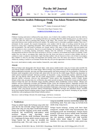 Sari, Indah Mutia (2024) Studi Kasus Analisis Dukungan Orang Tua dalam Memotivasi Belajar Anak. Psyche 165 Journal, 17 (3).