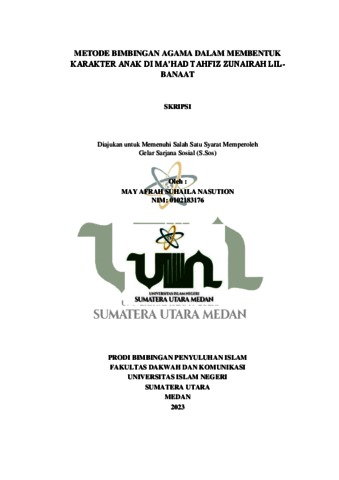 Afrah Suhaila Nasution, May (2024) Metode Bimbingan Agama Dalam Membentuk Karakter Anak Di Ma’had Tahfiz Zunairah Lilbanaat. Skripsi thesis, Universitas Islam Negeri Sumatra Utara.