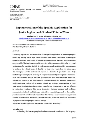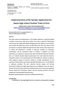 Irsani, Nabila (2024) Implementation of the Speakia Application for Junior high school: Student’ Point of View. IDEAS Journal of Language Teaching and Learning, Linguistics and Literature.
