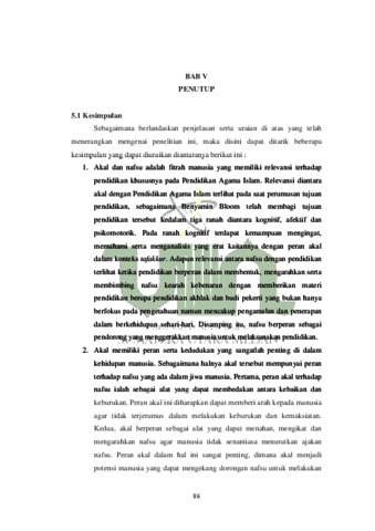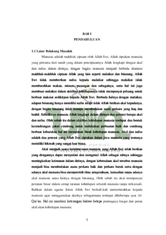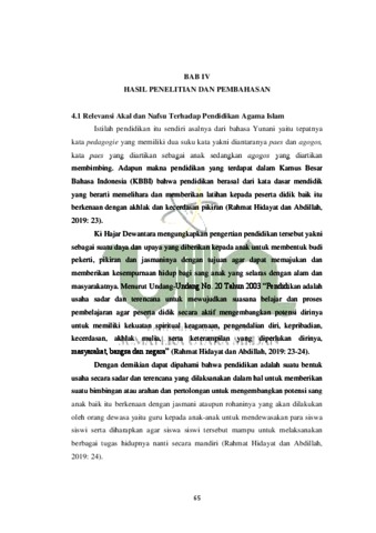 Penelitian ini berjudul “Konsep Dominasi Nafsu Terhadap Akal dalam AlQur’an Ditinjau dari Perspektif Pendidikan Islam”, secara khusus bertujuan (1) Untuk mengetahui relevansi antara akal dan nafsu terhadap pendidikan, (2) Untuk mengetahui peran akal terhadap nafsu, (3) Untuk mengetahui dominasi nafsu terhadap akal ditinjau berdasarkan perspektif pendidikan Islam. Penelitian ini menggunakan metode berupa penelitian kualitatif studi pustaka (library research). Untuk teknik pengumpulan data yang digunakan dalam penelitian ini diantaranya yaitu studi dokumen, editing, organizing, dan finding. Sedangkan untuk teknik analisis data yang digunakan dalam penelitian ini dengan cara reduksi data, penyajian data dan penarikan kesimpulan. Adapun hasil penelitian ini menunjukkan bahwa (1) Relevansi antara akal dengan Pendidikan Agama Islam terlihat dalam perumusan tujuan pendidikan. Sementara relevansi nafsu dengan Pendidikan Agama Islam terlihat ketika Pendidikan Agama Islam berperan dalam membentuk, mengarahkan serta membimbing nafsu kepada kebaikan dengan cara memberikan pelajaran akhlak dan budi pekerti. Serta nafsu berperan sebagai alat yang menggerakan manusia untuk melaksanakan pendidikan. (2) Akal mempunyai peran penting terhadap nafsu. Pertama, akal berperan sebagai alat yang dapat membedakan antara kebaikan dan keburukan. Kedua, akal berperan sebagai alat yang dapat menahan, mengikat, mengarahkan, serta mengendalikan nafsu manusia. (3) Dominasi nafsu terhadap akal terlihat ketika terjadinya pertarungan antara akal dan nafsu dalam jiwa manusia. Dominasi nafsu terhadap akal terjadi ketika sifat takwa manusia dikalahkan oleh sifat fujur, sehingga akan membawa manusia melakukan keburukan dan kemaksiatan yang berdampak menyengsarakan hidup manusia.