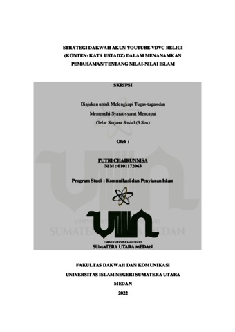 Chairunnisa, Putri (2022) Strategi Dakwah Akun YouTube VDVC Religi (Konten: Kata Ustadz) Dalam Menanamkan Pemahaman Tentang Nilai-nilai Islam. Diploma thesis, UIN Sumatera Utara.