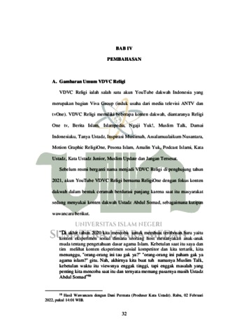 Penelitian ini menggunakan metode analisis deskriptif data yang diolah berasal dari hasil wawancara, observasi dan dokumentasi. Penelitian ini dilakukan dengan menganalisis 30 video Kata Ustadz Season 1 periode 14 April-12 Mei 2021 (Ramadan 1442 H) yang mengandung pesan dakwah aqidah, syariat dan akhlak lalu dikaitkan dengan teori manajemen strategi oleh Fred R. David yang berisikan perumusan stategi, implementasi dan evaluasi. Tujuan dari penelitian ini ialah untuk mengetahui strategi dakwah yang digunakan akun YouTube VDVC Religi dalam menanamkan pemahaman tentang nilai-nilai Islam melalui konten Kata Ustadz dengan mengangkat tema-tema yang sedang dibutuhkan saat ini dan dapat mengajak anak muda untuk selalu mengingat dan mengamalkan ajaran agama Islam dalam kehidupan sehari-hari. Hasil dari penelitian menunjukkan bahwa dalam pelaksanaan dakwahnya akun VDVC Religi melalui konten Kata Ustadz menggunakan 3 tahapan strategi yang meliputi: Pertama, perumusan strategi dilakukan dengan merumuskan tujuan, strategi dakwah dan metode dakwah menyesuaikan target penonton. Kedua, implementasi strategi dilakukan dengan pendekatan rasional dimana penonton diajak untuk merenung dari pertanyaan-pertanyaan yang dilontarkan dan mengambil pembelajaran melalui penjelasan dari para ustadz. Ketiga, evaluasi strategi dilakukan dengan menganalisis umpan balik dari penonton pada setiap episode terhadap strategi yang telah diterapkan untuk perbaikan kedepannya.