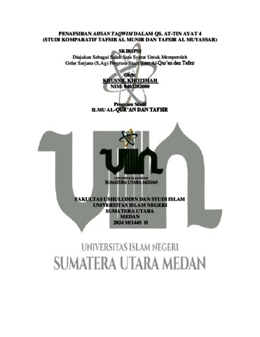 Khotimah, Khusnil (2024) Penafsiran ahsan taqwim dalam Qs at-tin ayat 4 (Studi komparatif tafsir Al Munir dan tafsir Al Muyassar). Skripsi thesis, UIN Sumatera Utara Medan.