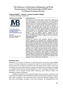 Khalida, Wahyuni (2024) The Influence of Motivation, Religiosity and Work Environment on The Productivity of SME Actors In Islamic Economics Review. JMB: Jurnal Manajemen Bisnis, 11 (2).