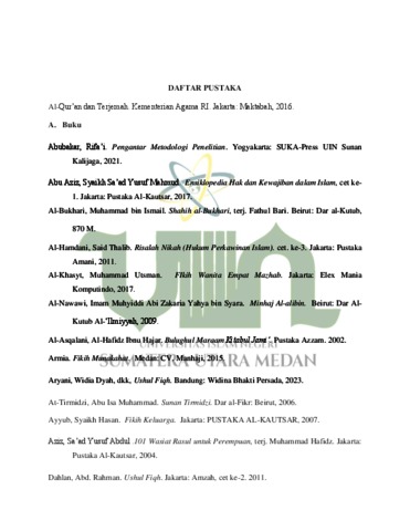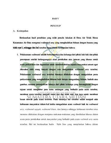 AMRI TONDI BUGIS, FAHMI (2024) Pandangan Ulama Hukum Menghadiri Walimatul ‘Ursy Yang Menghadirkan Biduan Dengan Pakaian Tidak Syar’i ( Studi Kasus Desa Air Teluk Hessa Kecamatan Air Batu). Skripsi thesis, Universitas Islam Negeri Sumatra Utara.