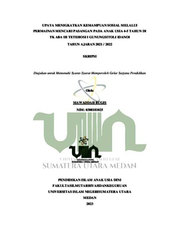 Bugis, Mawaddah (2023) Upaya Meningkatkan Kemampuan Sosial Melalui Permainan Mencari Pasangan Pada Anak Usia 4-5 Tahun di TK ABA III Tetehosi I Gunungsitoli Idanoi. Skripsi thesis, UIN Sumatera Utara Medan.