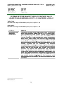 Penelitian ini bertujuan untuk mengetahui penerapan ekstrakurikuler Bintalis dalam membentuk karakter Islami siswa di SMA Negeri 12 Medan. Metode penelitian ini adalah penelitian kualitatif dengan pendekatan fenomenologi yang subjek penelitiannya adalah Pembina Bintalis, Guru PAI, dan beberapa siswa yang tergabung dalam kegiatan ekstrakurikuler Bintalis di SMA Negeri 12 Medan, yang dimaksudkan untuk memperoleh rumusan yang jelas mengenai sejauh mana upaya-upaya dalam membentuk karakter Islami siswa melalui kegiatan ekstrakurikuler Bintalis. Prosedur pelaksanaan penelitian ini menerapkan tiga teknik pengumpulan data yaitu observasi, wawancara, dan studi dokumentasi. Hasil penelitian menunjukan bahwa kecendrungan siswa yang tergabung dalam kegiatan ekstrakurikuler Bintalis di SMA Negeri 12 Medan memiliki kepribadian dan karakter yang baik serta memiliki nilai keislaman, dengan metode pengajaran yang digunakan tidak hanya berfokus pada pengetahuan agama, tetapi juga pada penerapan nilai-nilai dalam praktek sehari-hari. Ekstrakurikuler Bintalis tidak hanya berfokus pada pengajaran teori-teori agama, tetapi lebih menekankan pada pengembangan kedalaman spiritual dan moral individu. Tujuan utamanya adalah membentuk karakter siswa yang memiliki integritas, tanggung jawab, dan kemampuan untuk memberikan kontribusi positif kepada masyarakat sesuai dengan nilai-nilai ajaran Islam.