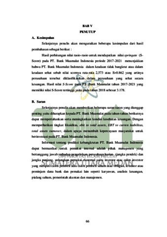 Lubis, Abu Sahmal (2023) Analisis Tingkat Financial Distress (Kesulitan Keuangan) Dalam Meminimalisir Risiko Kerugian Dengan Metode Springate (Studi Kasus PT. Bank Muamalat Indonesia). Skripsi thesis, UIN Sumatera Utara Medan.