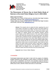 Usada, Widia The Phenomenon of Divorce Due to Social Media (Study of Decisions at the Lubuk Pakam Religious Court in 2021-2022). Jurnal Daulat Hukum.