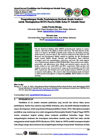 Ritonga, Adelia Priscila (2024) Pengembangan Media Pembelajaran Berbasis Benda Konkret untuk Meningkatkan HOTS Peserta Didik Kelas IV Sekolah Dasar. Jurnal Inovasi Pendidikan dan Pembelajaran Sekolah Dasar.