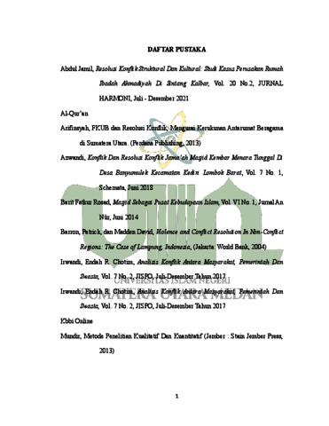 Pohan, Diki Wahyudi (2024) Resolusi Konflik Intern Jamaah Masjid Baiturrahman Di Dusun Asam Jawa Barat Desa Asam Jawa Kecamatan Torgamba. Skripsi thesis, UIN Sumatera Utara Medan.