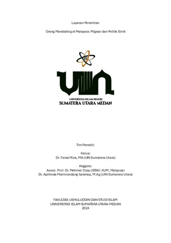 Riza, Faisal and Ozay, Mehmet and Harahap, Aprilinda Martinondang (2024) Orang Mandailing di Malaysia : Migrasi dan Politik Etnik. Fakultas Ushuluddin dan Studi Islam Universitas Islam Negeri Sumatera Utara, Medan.