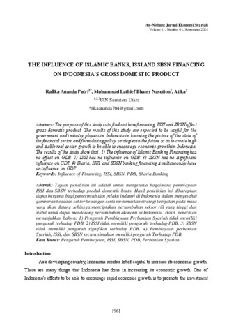 Putri, Rafika Ananda (2024) The Influence Of Islamic Banks, Issi And Sbsn Financing On Indonesia's Gross Domestic Product. An-Nisbah: Jurnal Ekonomi Syariah, 11 (1).