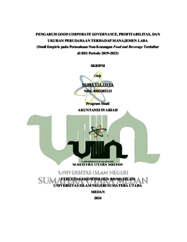 Yultisya, Nudia (2024) Pengaruh Good Corporate Governance, Profitabilitas, dan Ukuran Perusahaan terhadap Manajemen Laba (Studi Empiris pada Perusahaan Non Keuangan Food and Beverage yang Terdaftar di BEI Periode 2019-2023). Skripsi thesis, UIN Sumatera Utara Medan.