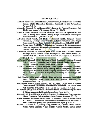 Pengaruh Good Corporate Governance, Profitabilitas, dan Ukuran Perusahaan terhadap Manajemen Laba (Studi Empiris pada Perusahaan Non Keuangan Food and Beverage yang Terdaftar di BEI Periode 2019-2023)