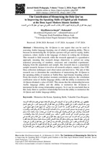 Khofifaturrochmah, Khofifaturrochmah (2024) The Contribution of Memorizing the Holy Qur’an to Improving the Speaking Skills of Eighth grade Students at the Ibnu Aqeel Modern Islamic Institute. Jurnal Simki Pedagogia, 7 (2). pp. 492-500.