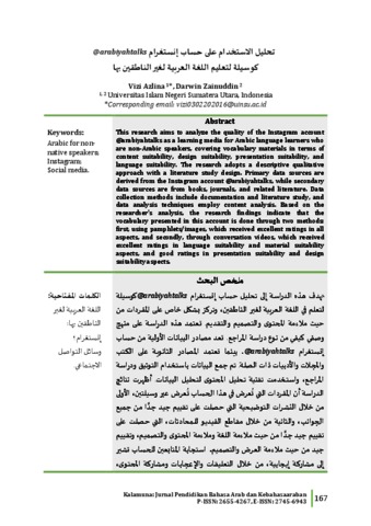 Azlina, Vizi (2024) كوسيلة لتعليم اللغة العربية لغير الناطقين به arabiyahtalks@ تحليل االستخدام على حسابإنستغرام. Kalamuna: Jurnal Pendidikan Bahasa Arab Dan Kebahasaaraban.