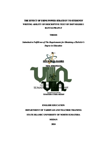 RAHMA RAMBE, SITI (2024) The Effect Of Using Power Strategy To Students’ Writing Ability Of Descriptive Text Of Smp Negeri 1 Rantauprapat. Skripsi thesis, Universitas Islam Negeri Sumatra Utara.