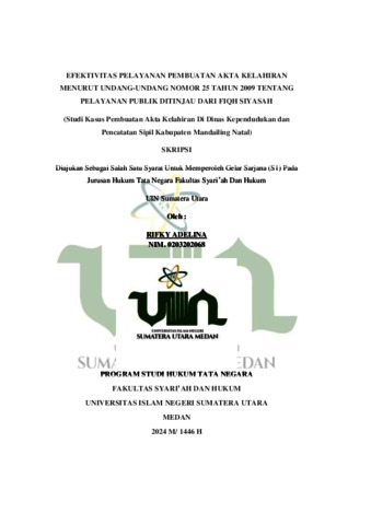 Adelina, Rifky (2024) Efektivitas Pelayanan Pembuatan Akta Kelahiran Menurut Undang-Undang Nomor 25 Tahun 2009 Tentang Pelayanan Publik Ditinjau dari Fiqh Siyasah. Skripsi thesis, Universitas Islam Negeri Sumatera Utara Medan.