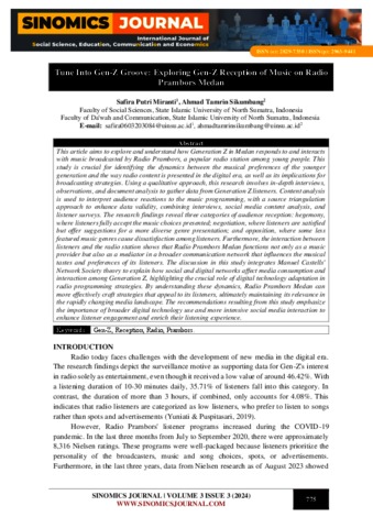 Miranti, Safira Putri (2024) Tune Into Gen-Z Groove: Exploring Gen-Z Reception of Music on Radio Prambors Medan. International Journal of Social Science, Education, Communication and Economics (SINOMICS JOURNAL).