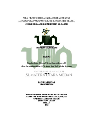 Mukhtar, Fathin (2022) Nilai-nilai Pendidikan Karater Dalam Kitab Mau’izhatul Mu’minin Jilid 2 Karya Syeikh Muhammad Jamaluddin Al-Qasimi. Diploma thesis, UIN Sumatera Utara.