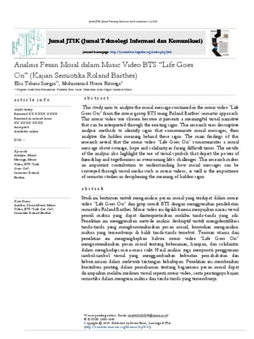 Siregar, Elsa Tabina (2020) Analisis Pesan Moral dalam Music Video BTS “Life Goes On” (Kajian Semiotika Roland Barthes). Jurnal JTIK (Jurnal Teknologi Informasi dan Komunikasi).