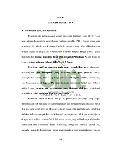 Kesuma, Fajar Hadi (2021) Upaya Guru Pendidikan Agama Islam (PAI) Dalam Meningkatkan Higher Order Thinking Skill (HOTS) Pada Materi Menghidupkan Nurani Dengan Berfikir Kritis Dengan Menggunakan Strategi Problem Based Learning Kelas XII di SMA Negeri 3 Binjai. Skripsi thesis, UIN Sumatera Utara Medan.