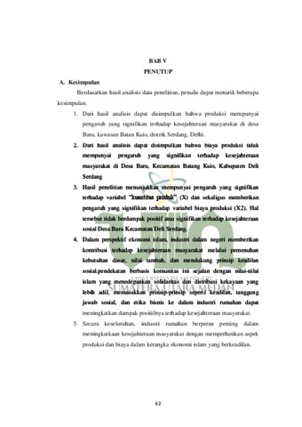Pengaruh Jumlah Produksi Dan Biaya Produksi Industri Rumahan Terhadap Kesejahteraan Masyarakat Dalam Perspektif Ekonomi Islam (Studi Pada Home Industri Di Desa Baru, Kecamatan Batang Kuis, Kabupaten Deli Serdang)