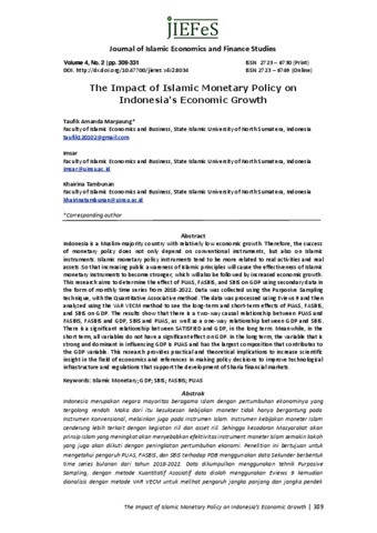 Arnanda Marpaung, Taufik The Impact of Islamic Monetary Policy on Indonesia's Economic Growth. Journal of Islamic Economics and Finance Studies.