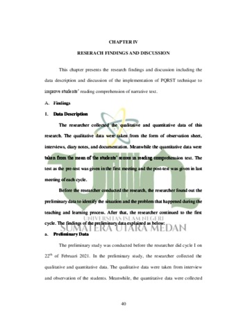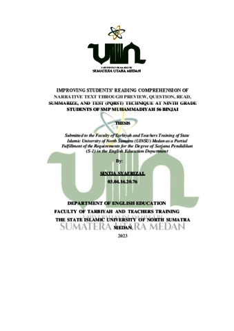 IMPROVING STUDENTS’ READING COMPREHENSION OF NARRATIVE TEXT THROUGH PREVIEW, QUESTION, READ, SUMMARIZE, AND TEST (PQRST) TECHNIQUE AT NINTH GRADE STUDENTS OF SMP MUHAMMADIYAH 56 BINJAI