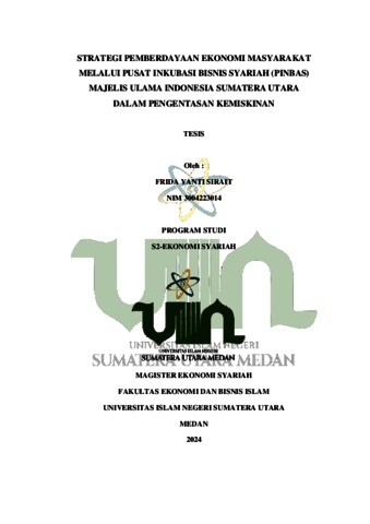 STRATEGI PEMBERDAYAAN EKONOMI MASYARAKAT MELALUI PUSAT INKUBASI BISNIS SYARIAH (PINBAS) MAJELIS ULAMA INDONESIA SUMATERA UTARA DALAM PENGENTASAN KEMISKINAN