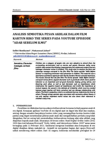 Handayani, Safitri (2024) Analisis Semiotika Pesan Akhlak Dalam Film Kartun Riko The Series Pada Youtube Episeode “Adab Sebelum Ilmu”. eScience Humanity Journal, 4 (2). ISSN 2747-1926