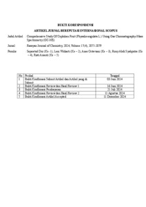 Dur, Sajaratud and Widiarti, Leni and Octaviani, Anes and Syahputra, Rony Abdi and Arianti, Risti (2024) Hasil Turnitin dan Bukti Korespondensi Artikel : Comprehensive Study of Ceplukan Fruit (Physalis Angulata L.) Using Gas Chromatography-Mass Spectrometry (GC-MS). Universitas Islam Negeri Sumatera Utara, Medan.