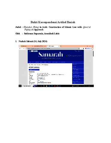 Suparmin, Sudirman and Lubis, Asmuliadi Bukti Korespondensi dan Turnitin "Khanduri Blang in Aceh: Construction of Islamic Law with Qawa’id Fiqhiyyah Approach". Universitas Islam Negeri Ar-Raniry.