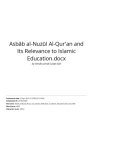 Nasution, Muhammad Roihan Hasil Turnitin Artikel : Asbāb al-Nuzūl Al-Qur'an and Its Relevance to Islamic Education. Universitas Islam Negeri Sumatera Utara.