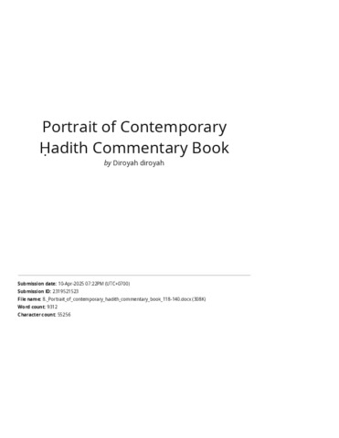Ja'far, Hasbullah Bin Uji Similarity Portrait of Contemporary Hadith Commentary Book: A Study of The Book Fath Al-Mun’im Syarh Sahih Muslim By Musa Syahin Lasyin. Universitas Islam Negeri Sumatera Utara. (Tidak diterbitkan (Unpublished) )